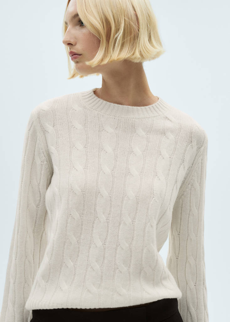 100% lana. Tejido de punto grueso. Diseño recto. Cuello redondo. Manga larga. Sin cierre. Colección Selection. Tejido punto trenzado