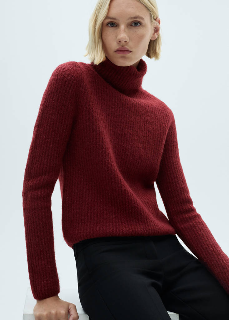 Tejido mezcla de lana. Diseño recto. Manga larga. Cuello alto. Cuello vuelto. Sin cierre