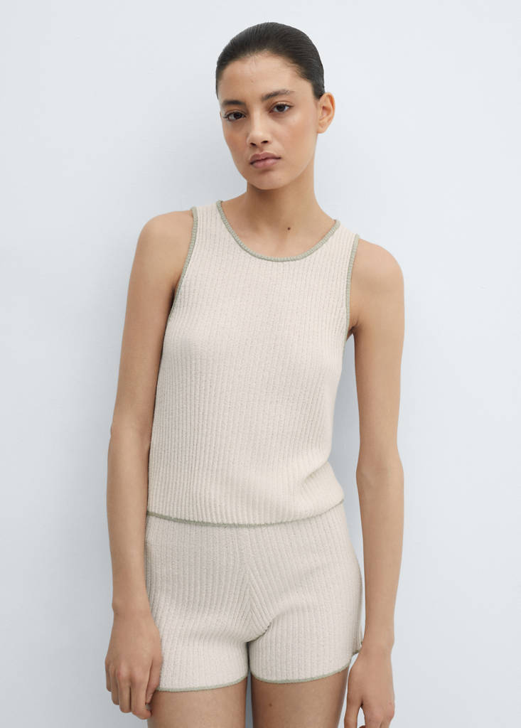 Tejido de canalé. Tejido con textura. Diseño recto. Cuello redondo. Sin mangas. Tirantes anchos. Sin cierre. Ribetes en contraste. Total look