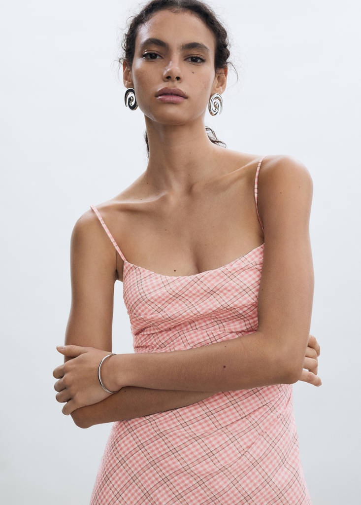 Tejido mezcla de algodón. Diseño midi. Diseño recto. Estampado de cuadros. Escote cuadrado. Sin mangas. Tirantes finos. Cierre cremallera invisible en el lateral. Diseño entallado