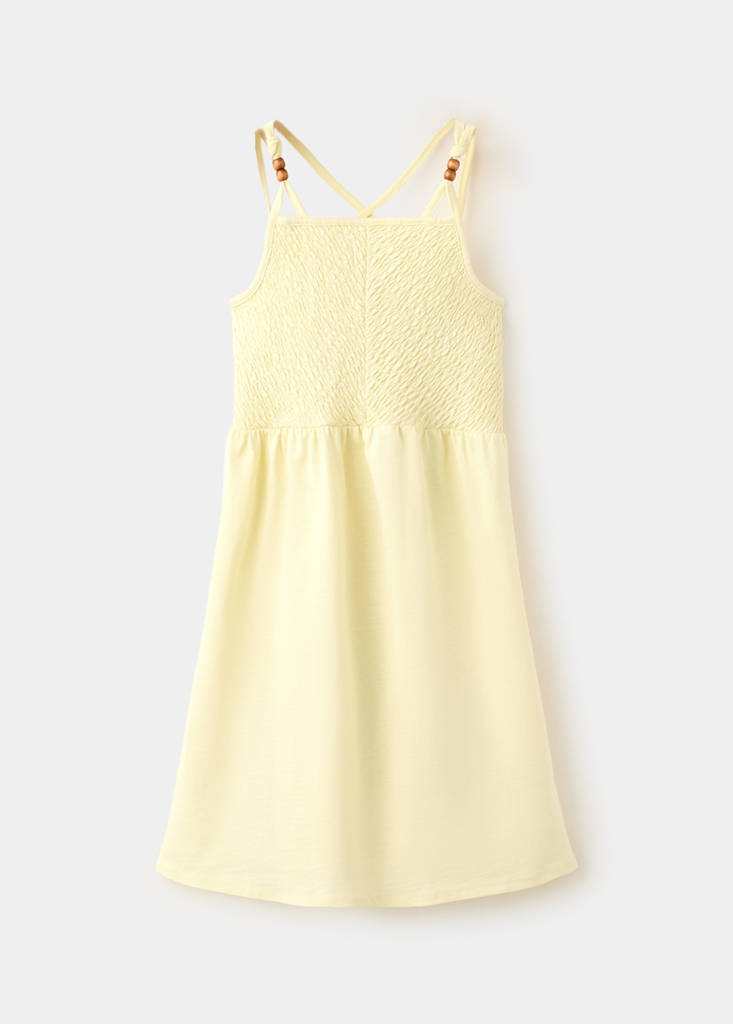 New NowLong dress with ruffled detailCurrent price [US$ 35.99 ]US$ 35.99Select a colourPastel YellowSelect your size5-6 years (116cm)Not available. I want it!7-8 years (128cm)Not available. I want it!9-10 years (140cm)Not available. I want it!11-12 years (152cm)Not available. I want it!13-14 years (164cm)Not available. I want it!DimensionsNotify meAdd to WishlistSee lookFree delivery to store100% cotton fabric. Long design. Straight design. Straps. Bead detailing on the shoulder straps. Gathered detail on the chestDetails, composition and careStore availabilityItem qualitiesRecycled cottonAt least 20%This fibre is obtained from pre- and post-consumer textile waste that is transformed into new fabrics.