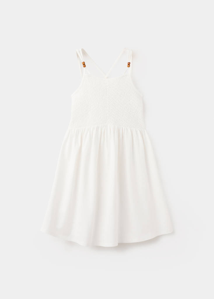 New NowLong dress with ruffled detailCurrent price [US$ 35.99 ]US$ 35.99Select a colourOff WhiteSelect your size5-6 years (116cm)Not available. I want it!7-8 years (128cm)9-10 years (140cm)Not available. I want it!11-12 years (152cm)Not available. I want it!13-14 years (164cm)Not available. I want it!DimensionsAddAdd to your wishlistSee lookFree delivery to store100% cotton fabric. Long design. Straight design. Straps. Bead detailing on the shoulder straps. Gathered detail on the chestDetails, composition and careStore availabilityItem qualitiesRecycled cottonAt least 20%This fibre is obtained from pre- and post-consumer textile waste that is transformed into new fabrics.