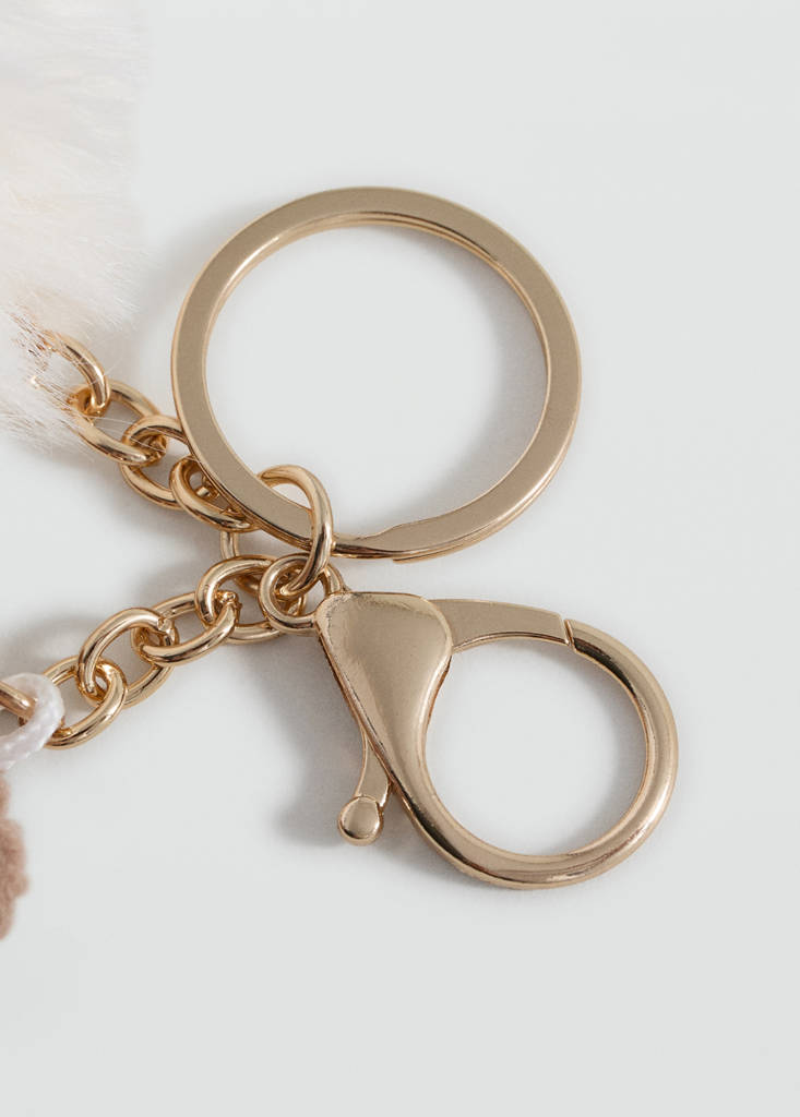 Pendant keychain. Charm bear. Teddy bear design. Pompom detail
