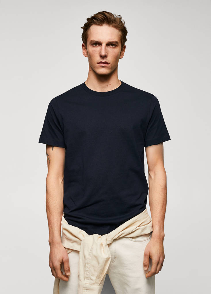 Basics Collection. Light cotton. Slim fit. Basic design. Round neck. Short sleeves. The model is wearing a size M. 100% cotton fabric. Sustainable cotton fabric. Standard Length. Flat structure Lightweight. Slim Silhouette. Round Lapel Collar. Short Sleeve Length. No Print. No Fantasy