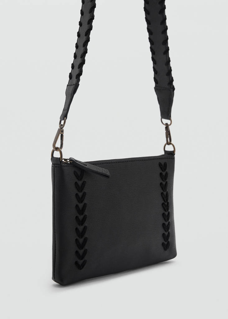 100% Leather. Embroidered long strap. Zip closure. Magnetic metallic fastening