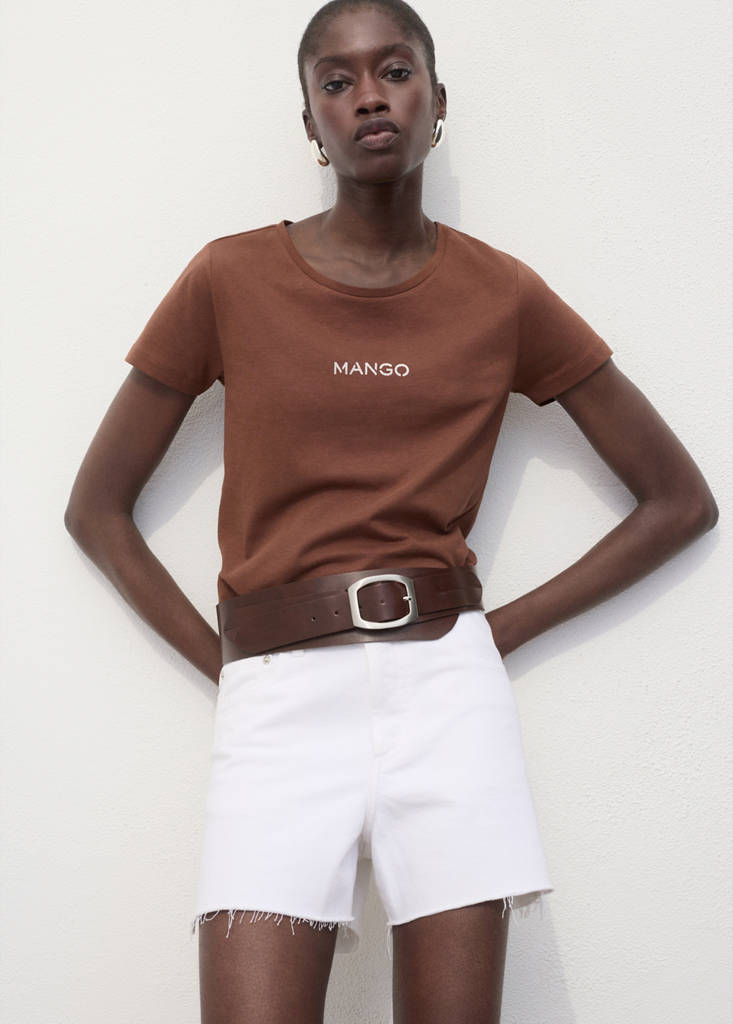Logo cotton T-shirtCurrent price [Php 595 ]Php 595Select a colourBrownThe model is wearing size S and is 176cm tall.Select your sizeXSNot available. I want it!SNot available. I want it!MNot available. I want it!LNot available. I want it!XLNot available. I want it!XXLNot available. I want it!DimensionsNotify meAdd to WishlistSee lookConvenient home delivery100% cotton fabric. Straight design. Round neck. Short sleeves. Logo print. No Fastening. Knit fabric. No Fastening. Mango logo print. Logo detailDetails, composition and careStore availabilityItem qualitiesRecycled cottonAt least 20%This fibre is obtained from pre- and post-consumer textile waste that is transformed into new fabrics.