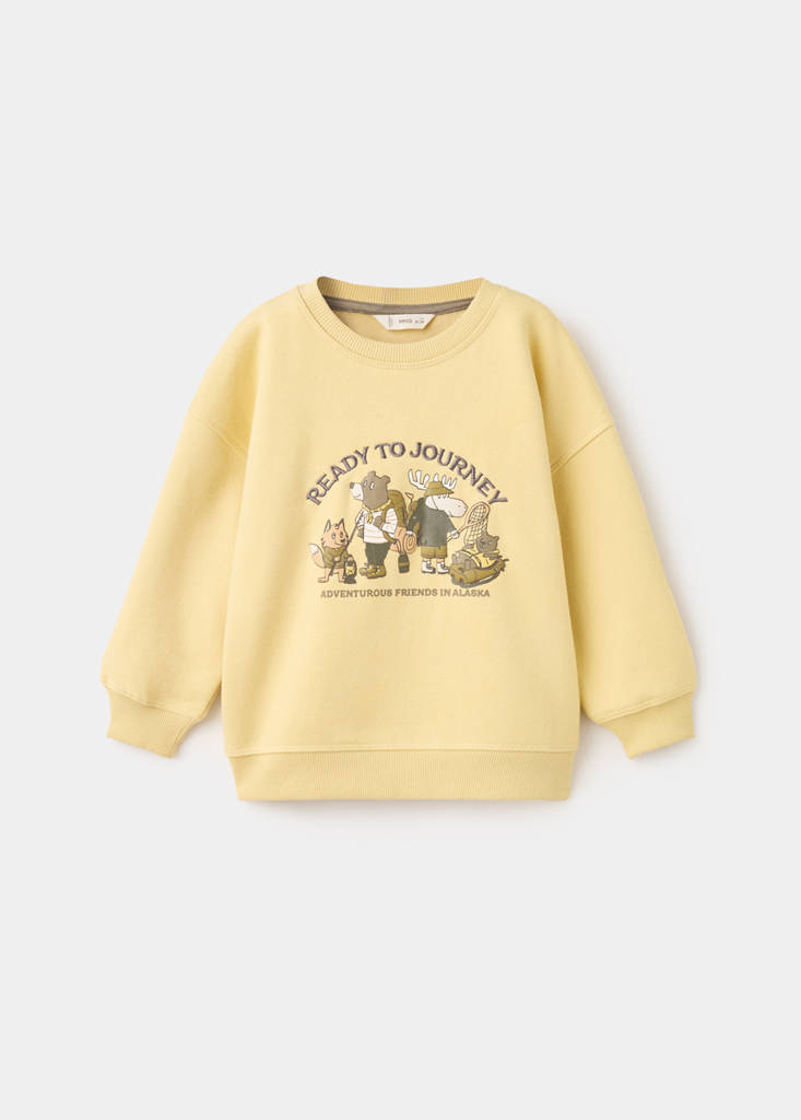 Cotton fabric. Straight design. Embroidered design. Printed design. Embroidery on the front. Image printed on the front. Round neck. Long sleeves. Quilted cotton interior. Soft finish