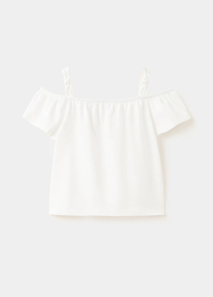 Off-the-shoulder cotton T-shirtCurrent price [PKR 3,490.00 ]PKR 3,490.00Select a colourOff WhiteSelect your size12-18 months (86cm)18-24 months (92cm)2-3 years (98cm)3-4 years (104cm)4-5 years (110cm)5-6 years (116cm)DimensionsAdd to WishlistSee lookFree delivery to store100% cotton fabric. Straight design. Ruched detail at the neck. Braces with a knotted detail. Short sleeves. Off shouldersDetails, composition and careStore availabilityItem qualitiesRecycled cottonAt least 20%This fibre is obtained from pre- and post-consumer textile waste that is transformed into new fabrics.
