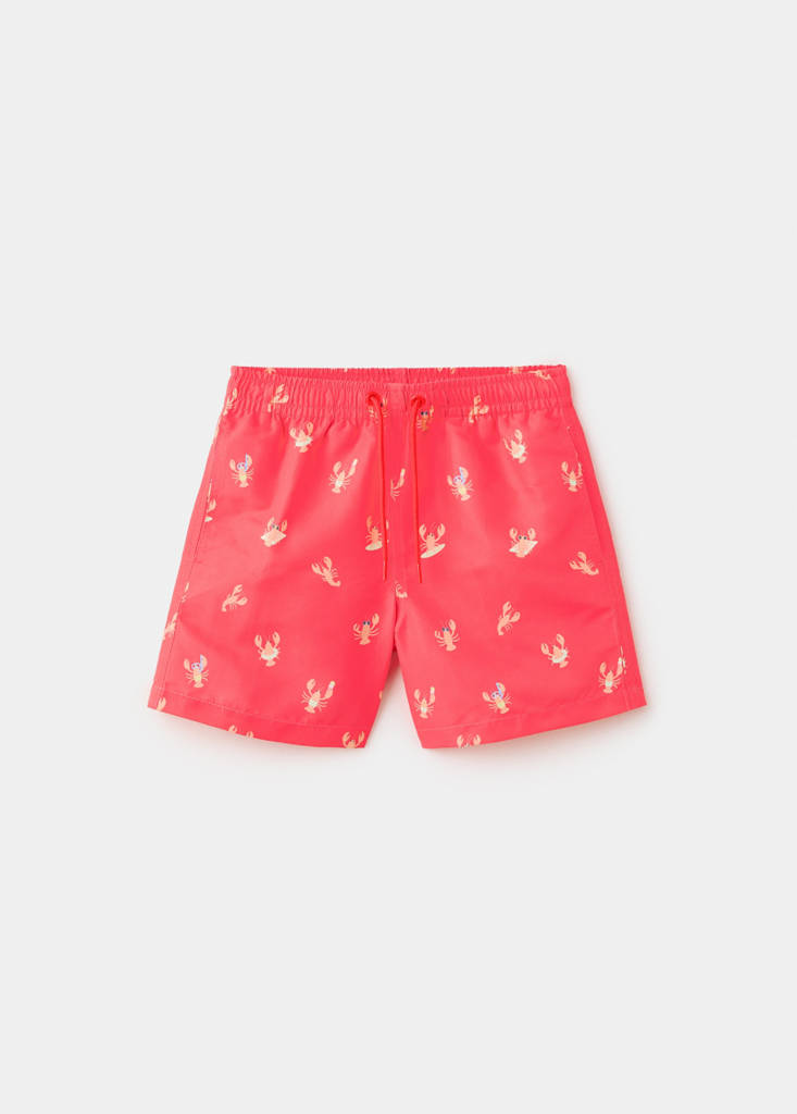 Stretch fabric. Straight design. Short design. Printed design. Lobster print. Elastic waist with adjustable drawstring. Two side pockets. Swimwear collection