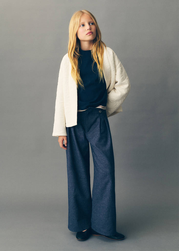 Fabric with cotton. Quilted design. Textured. Flowered embroidery. Long sleeves. Two side pockets. Cotton cover. Limited edition