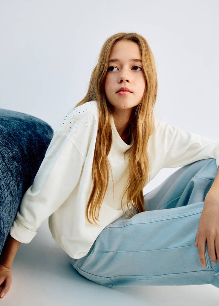 100% Cotton. Brilliant design. Rhinestone detail. Round neck. Long sleeves.