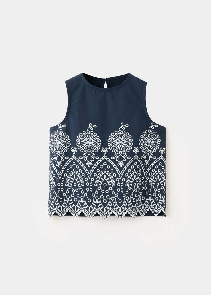 100% cotton fabric. Straight design. Round neck. Straps. Embroidered details