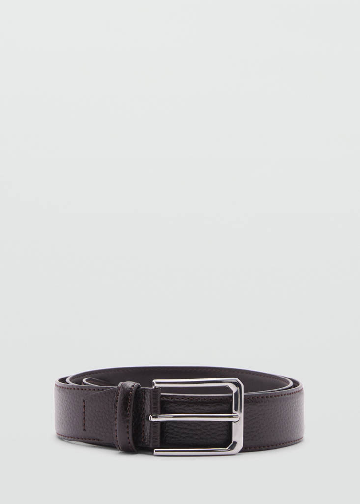 100% bovine leather. Very smooth leather. Square metallic buckle close