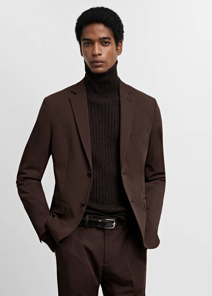 Tailoring collection. Super slim fit. Comfort Stretch: Stretch fabric for added comfort. Fabric made of recycled polyester, a durable, breathable, easy-care fibre that provides comfort in use. Lapel with notch. Two-button fastening at the front. Chest welt pocket. Two pockets with flaps on the front. Short-length jacket. Double back slit. Inner lining. Inner pockets. Comfort: Horizontal and vertical stretch fabric for added comfort. Long buttoned sleeves