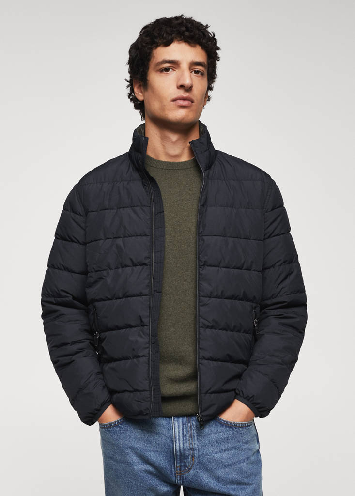 Basics Collection. Short design. Quilted design. Water-repellent: The durable finish of this garment protects against light rain, repelling contact with water and raindrops. Long sleeve. Breathable fabric. Thermal insulation. Turtleneck. Zip fastening. Two zipped pockets. Inner pockets. The model is wearing a size M