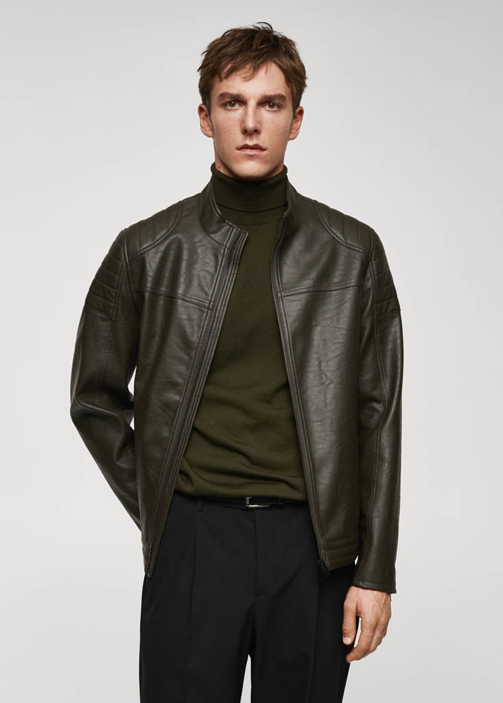 Nappa faux-leather jacketCurrent price [PKR 29,990.00 ]PKR 29,990.00Select a colourKhakiThe model is wearing size M and is 185cm tall.Select your sizeSMLXLXXLDimensionsAdd to WishlistSee lookFree delivery to storeKhaki is an online exclusive. Slim fit. High collar. Front zip closure. Padded shoulder reinforcement. Long sleeves with zipped cuff. Zip pockets on both sides. Inner lining. Interior pocketDetails, composition and careStore availability
