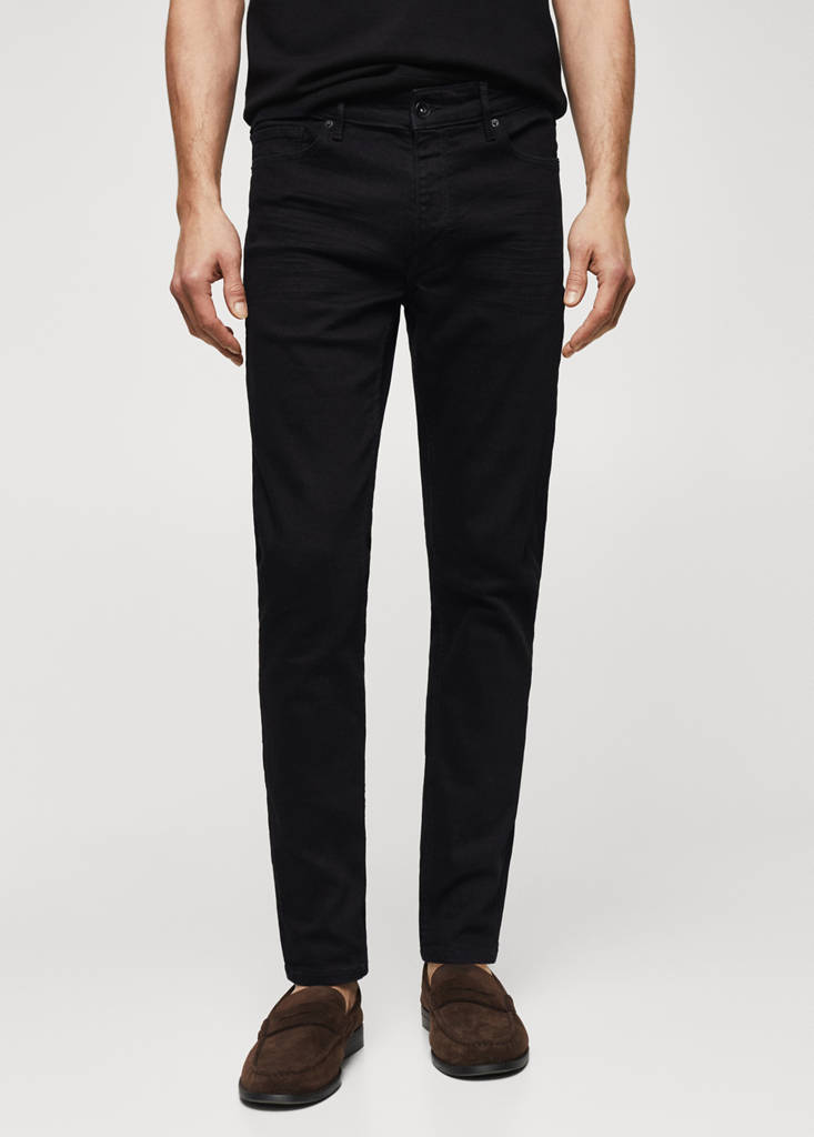 Basics Collection. Skinny fit. Crop design. Sustainable cotton fabric. Stretch cotton fabric. Zip and button fastening. Belt loops. Five pockets. Denim jeans style. Denim collection. Sustainable denim. Black. Dark grey wash