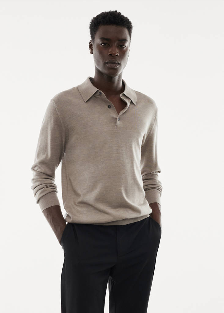 Performance Collection. 100% merino wool. Fine knit fabric. Regular fit. Machine or hand washable. Polo-neck with button closure. Long sleeves with elastic cuffs. Straight hem. Contrast ribbed finishes on collar, sleeves and bottom hem. The beige colour is an online exclusive. Thermoregulating: This fabric offers optimal breathability to keep you at a stable temperature