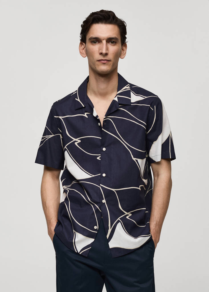 Regular fit. Bowling collar. Short sleeves. Straight hem. 100% cotton fabric. Front closure with buttons. Printed design
