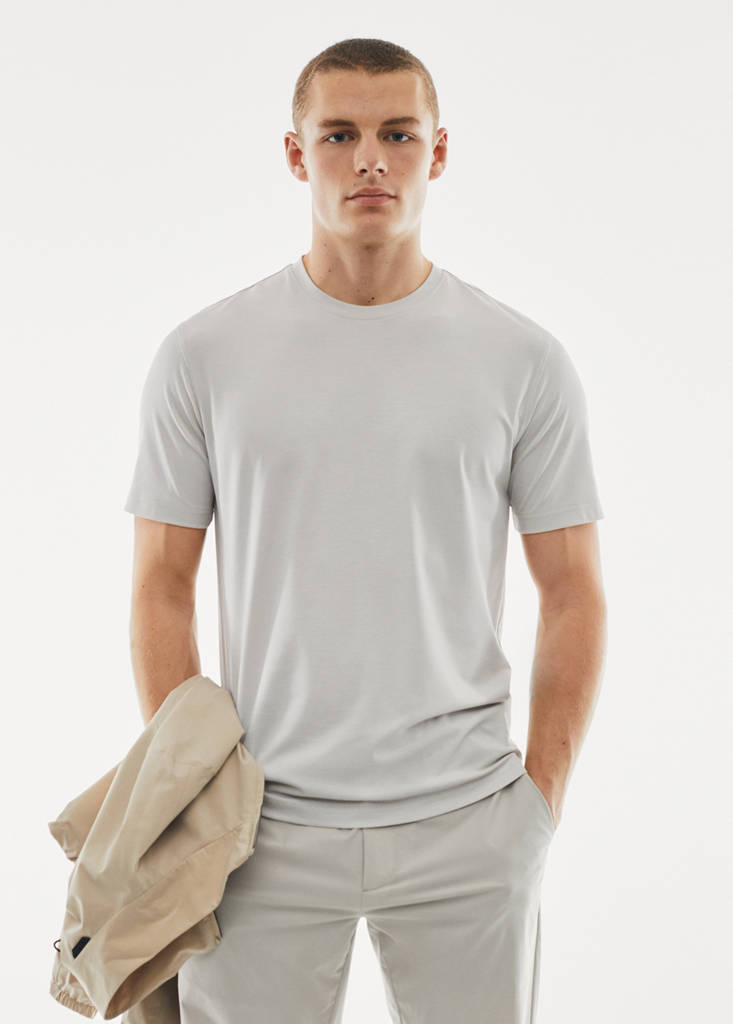 Performance Collection. Regular fit. Polyester fabric. Quick Dry. Anti-bacterial fabric. Anti Odour fabric: The chemical finish of the fabric eliminates bacteria and odours. Round neck. Short sleeves. Straight hem