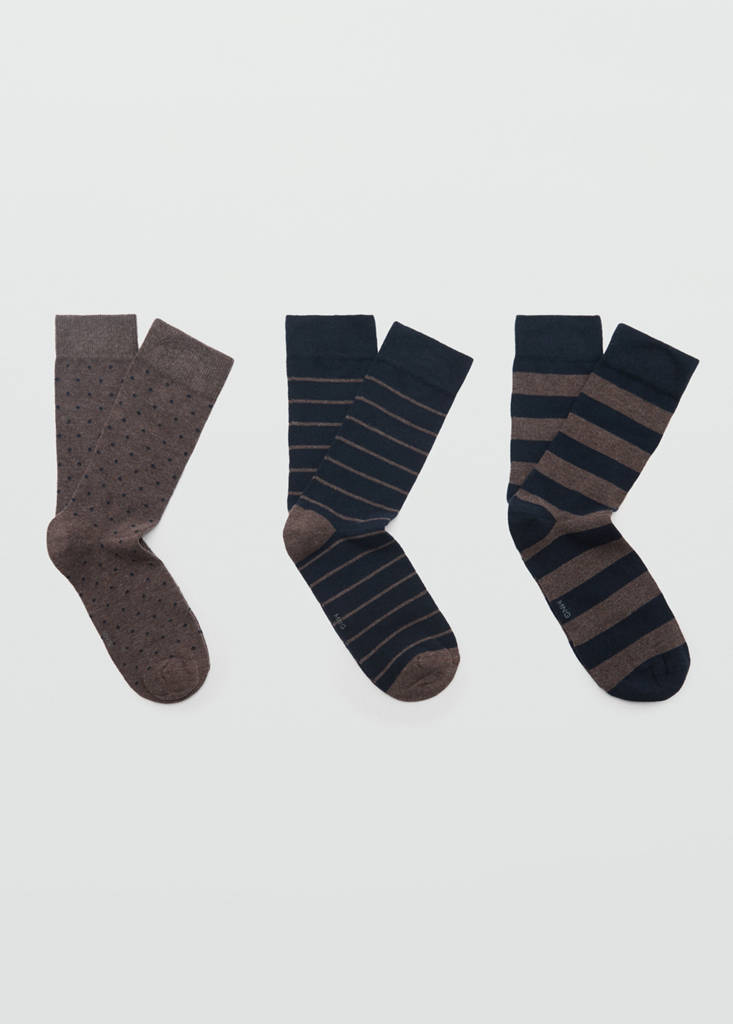 3 pack mixed socksCurrent price [PKR 5,490.00 ]PKR 5,490.00Select a colourBrownSelect your size40-4243-45DimensionsAdd to WishlistSee lookFree delivery to storePack of 3. Printed design. Cotton blend fabricDetails, composition and careStore availability