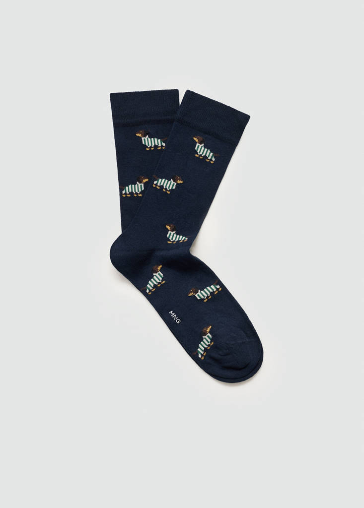 Dog-embroidered cotton socks