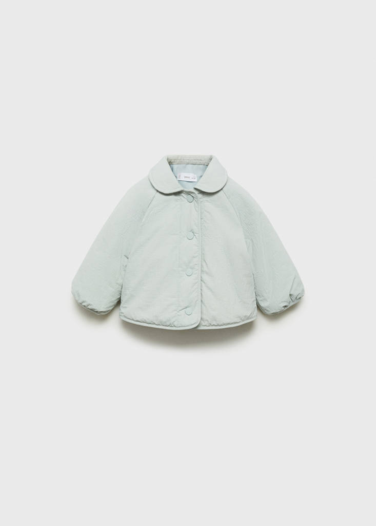 Quilted baby-collar coatCurrent price [PKR 11,990.00 ]PKR 11,990.00Select a colourAqua GreenSelect your size1-3 months (62cm)3-6 months (68cm)6-9 months (74cm)9-12 months (80cm)12-18 months (86cm)18-24 months (92cm)2-3 years (98cm)DimensionsAdd to WishlistSee lookFree delivery to storeQuilted design. Elasticated cuffs. Label for personal data. Peter Pan collar. Long sleeves. Front closure with buttonsDetails, composition and careStore availability