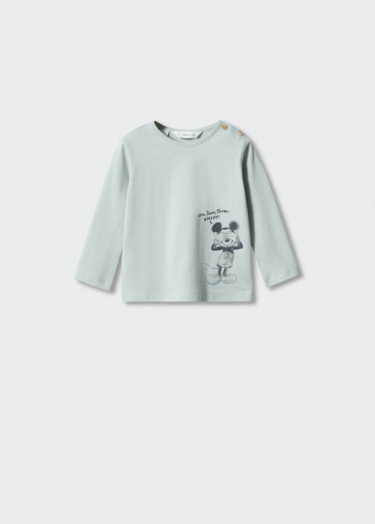 100% Cotton. Mickey Mouse print. Straight design. Rounded neck. Long sleeve. Button up
