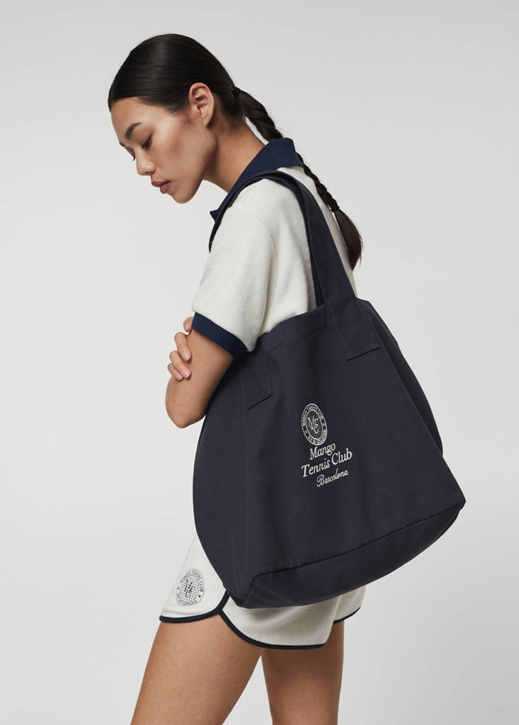 Embroidered tote bagCurrent price [PKR 14,490.00 ]PKR 14,490.00Select a colourNavySelect your sizeOne sizeAdd to WishlistSee lookFree delivery to store100% Cotton. Embroidered logo. Two short handles. Unclosed. Mango Tennis Club Collection60.0x34.0x26.0 cm (Length x Height x Width)Details, composition and careStore availability