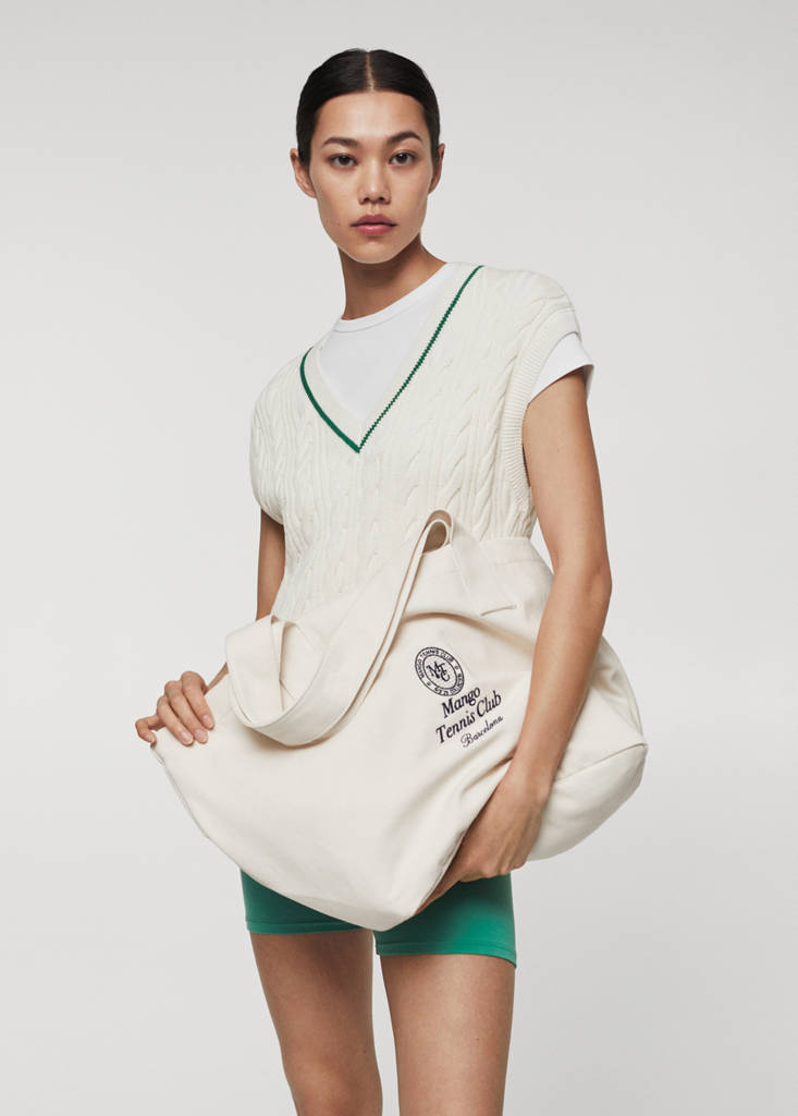 Embroidered tote bagCurrent price [PKR 14,490.00 ]PKR 14,490.00Select a colourEcruSelect your sizeOne sizeAdd to WishlistSee lookFree delivery to store100% Cotton. Embroidered logo. Two short handles. Unclosed. Mango Tennis Club Collection60.0x34.0x26.0 cm (Length x Height x Width)Details, composition and careStore availability