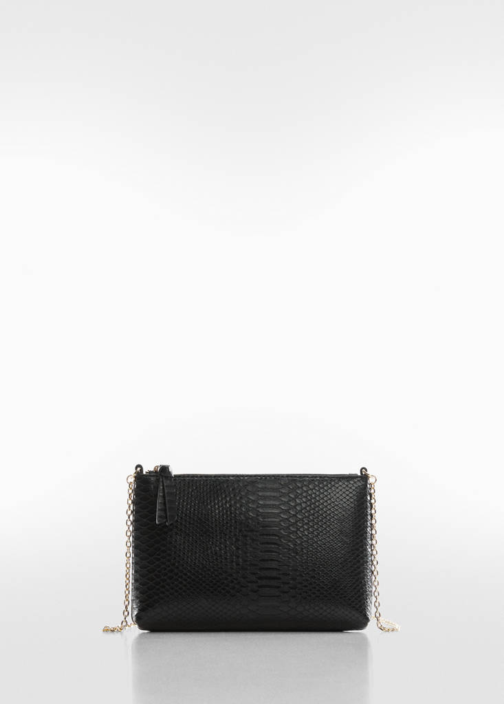 Small size. Crocodile effect. Long detachable chain strap. Zip fastening. Inner lining