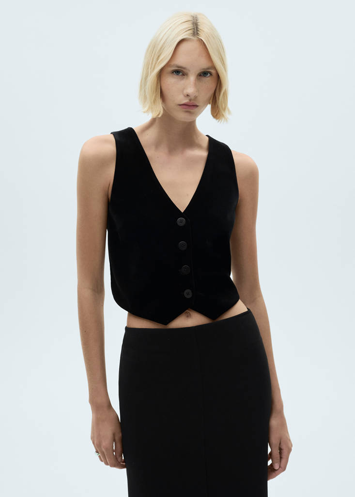 Cropped velvet waistcoatCurrent price [PKR 11,990.00 ]PKR 11,990.00Select a colourBlackSelect your sizeXXSXSSMLXLXXL1XL2XL3XL4XLAdd to WishlistSee lookFree delivery to storeVelvet fabric. Straight design. Crop design. V-neck. Sleeveless. Button fastening at the front. Party, ceremony and communion collectionDetails, composition and careStore availability