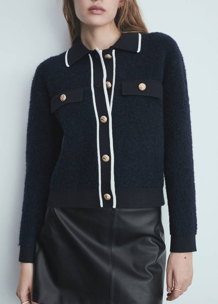 Knitted buttoned jacketCurrent price [PKR 22,990.00 ]PKR 22,990.00Select a colourDark NavyThe model is wearing size S and is 177cm tall.Select your sizeXSSMLXLDimensionsAdd to WishlistSee lookFree delivery to storeChunky knit fabric. Straight design. Shirt collar. Long sleeves with elastic cuffs. Two chest pockets with flaps. Without inner lining. Contrasting finish. Front closure with buttonsDetails, composition and careStore availability