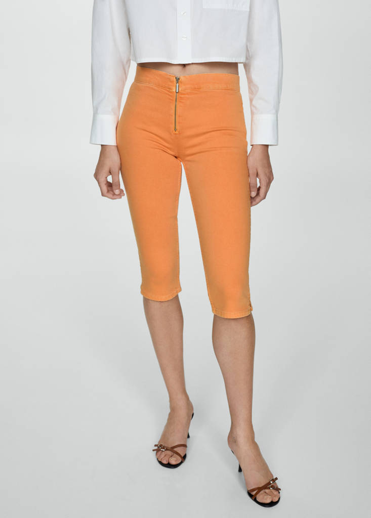 Slim-fit capri jeans with zipCurrent price [PKR 14,490.00 ]PKR 14,490.00Select a colourOrangeSelect your size323436384042DimensionsAdd to WishlistSee lookFree delivery to storeDenim-style cotton fabric. Capri design. Skinny fit. Mid-rise. Belt loops. Two patch pockets at the back. Front zip closure. Interior length 43.5 cmDetails, composition and careStore availability