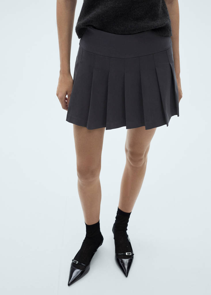 Fluid fabric. Short design. Straight design. Patterned design. Invisible lateral zip fastening