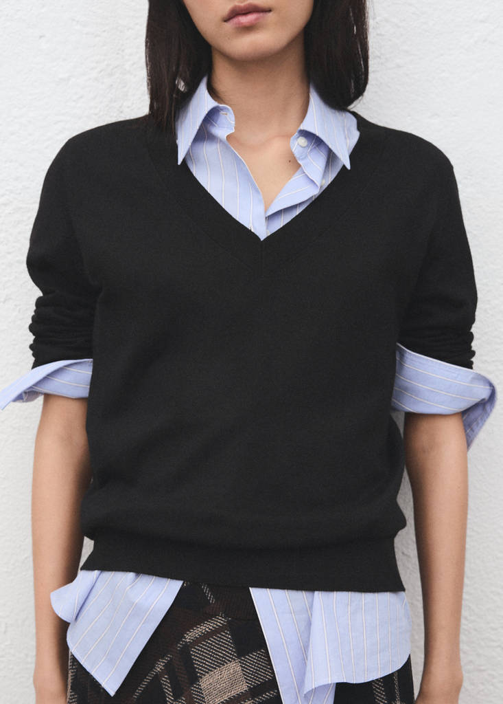 V-neck knit sweaterCurrent price [PKR 8,990.00 ]PKR 8,990.00Select a colourBlackSelect your sizeXXSXSSMLXLXXL1XL2XL3XL4XLSize guideAdd to WishlistSee lookFree delivery to storeSee availability in storeDescriptionCrafted from fine-knit fabric, this straight design features a V-neck and long sleevesSee detailsShare
