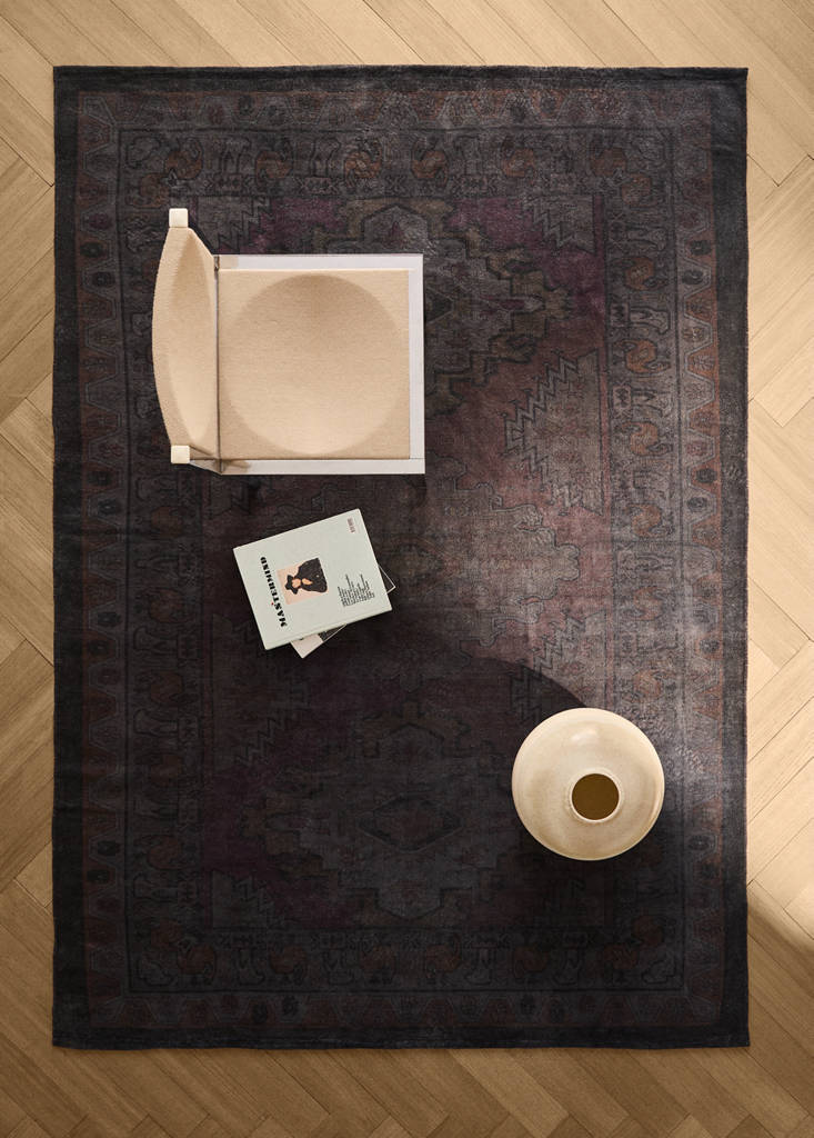 Tkanina bawełniana. Rozmiar: 160x230 cm. Perski wzór. Efekt overdyed. Bardzo wszechstronny dywan. Model wielokolorowy