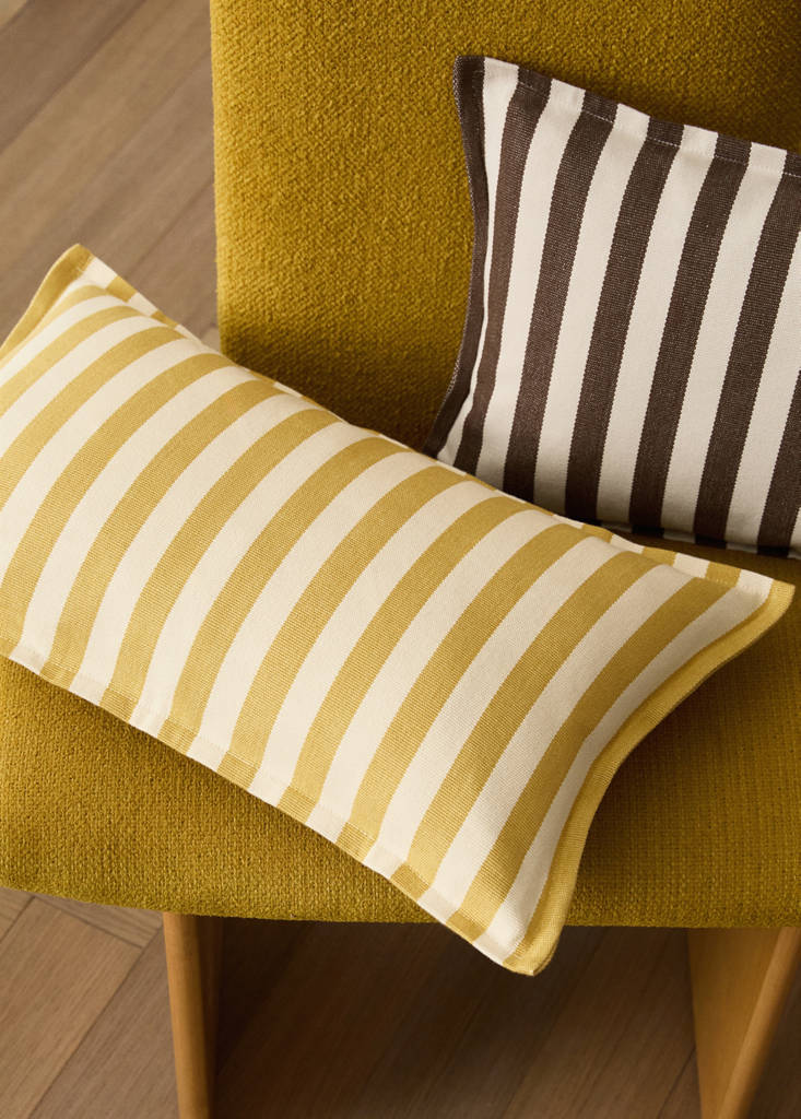 100% Bawełna. Tkany wzór w paski. Wielokolorowy wzór. Tkanina płócienna. Dodaj kolorowy i oryginalny akcent do każdej przestrzeni. Zapięcie z tyłu na kryty suwak. Bez wypełnienia. Dostępna w dwóch rozmiarach. Dostępne w różnych kolorach