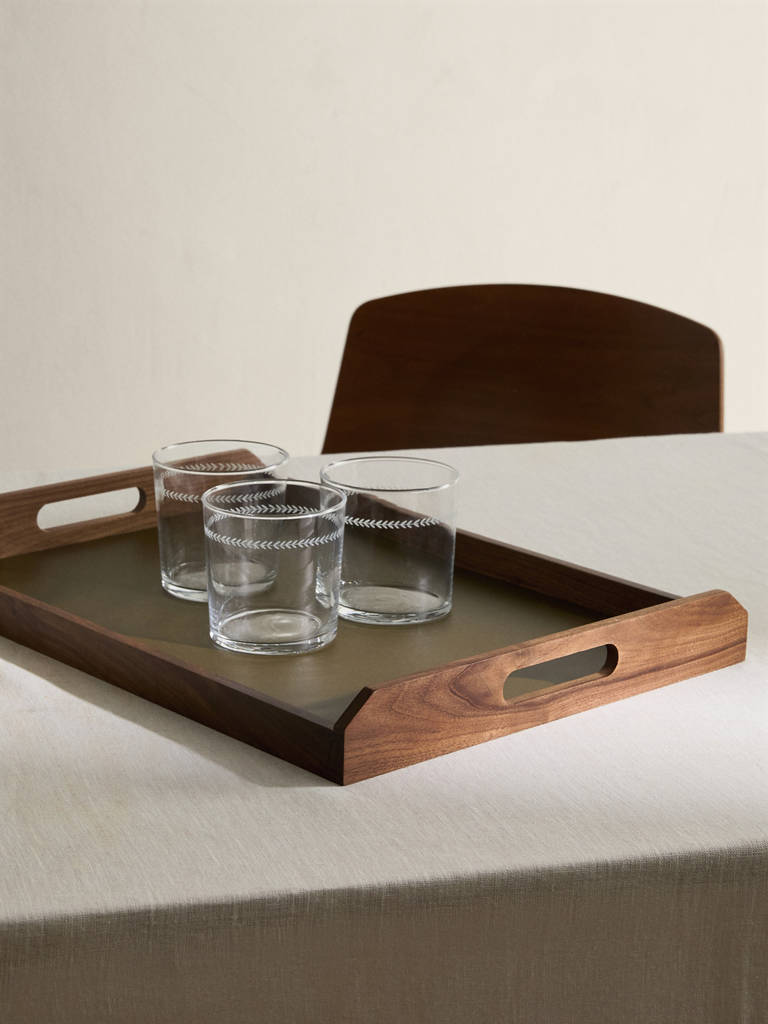 Taca dekoracyjna. Wymiary: 45x31,5x5 cm. Prostokątny kształt z prostym i nowoczesnym designem. Dwa zintegrowane uchwyty. Tego typu taca może być używana do celów dekoracyjnych, jako podstawa do umieszczenia świec, roślin lub innych ozdób albo może mieć zastosowanie praktyczne i służyć do organizowania i prezentowania artykułów w przestrzeni, jak np. stolik kawowy. Dostępna w dwóch rozmiarach