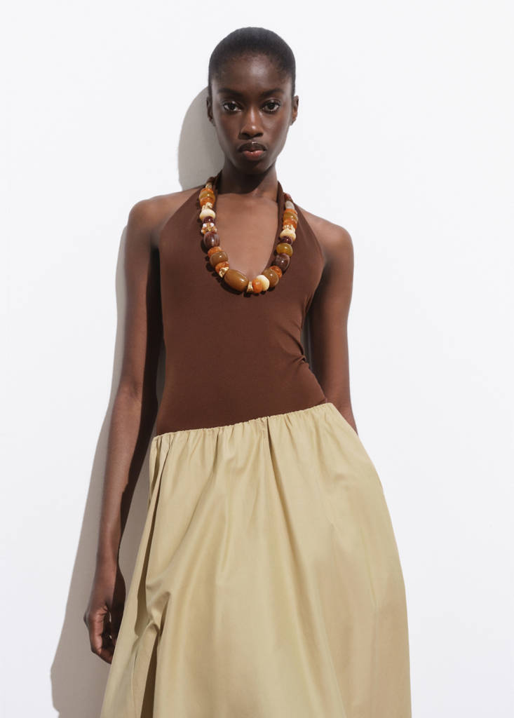 Tkanina elastyczna. Design body. Dekolt w serek. Bez rękawów. Dekolt na plecach. Zapięcie na guziki