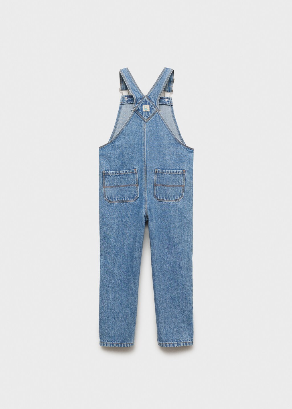 Tkanina 100% bawełna. Jeansowy styl. Długi fason. Prosty krój. Prosty dekolt. Regulowane ramiączka. Boczne zapięcie na guziki. Dwie kieszenie boczne. Dwie kieszenie naszywane z tyłu.