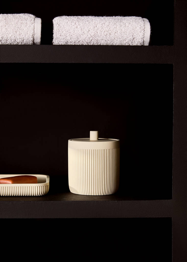 100% resina. Com tampa. Forma cilíndrica. Ideal para qualquer época do ano. Cria um ambiente cálido e aconchegante. Detalhe riscas. Combina com mais artigos da coleção