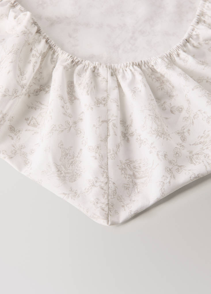 100% Algodão. Tamanho: 60 x 120 x 15 cm. Estampado 'toile de jouy'. Ideal para um descanso agradável para os mais pequenos da casa. Combina com mais produtos da coleção
