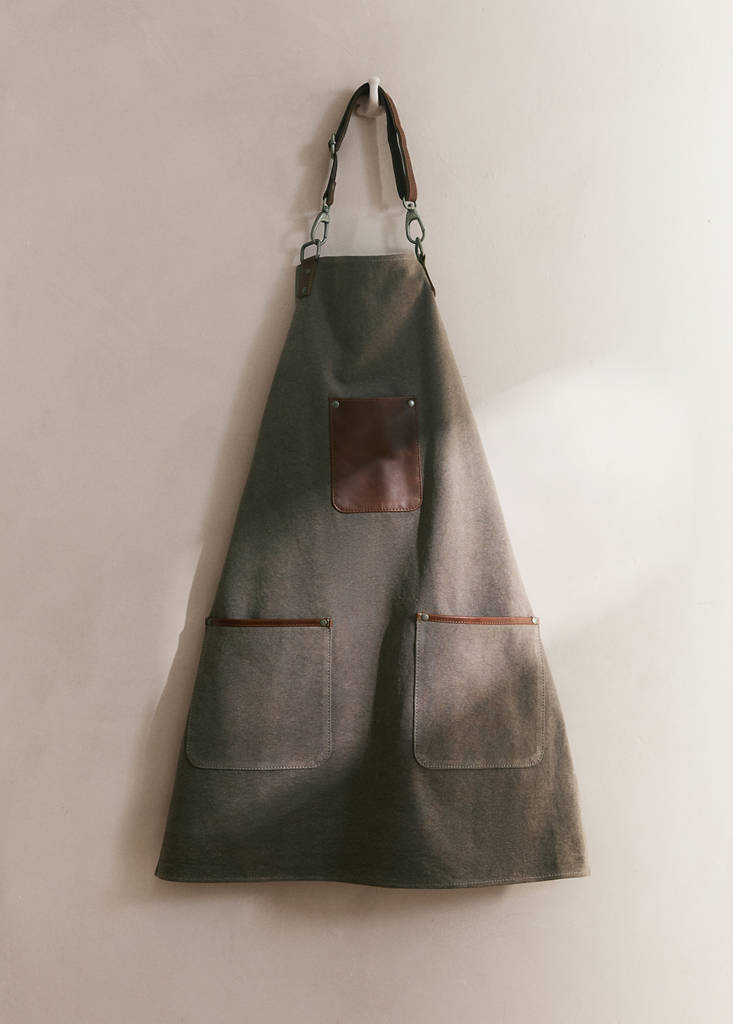 Tecido misto de algodão. Tamanho: 60x80 cm. Dois bolsos. Pormenores de pele. Ideal para o exterior