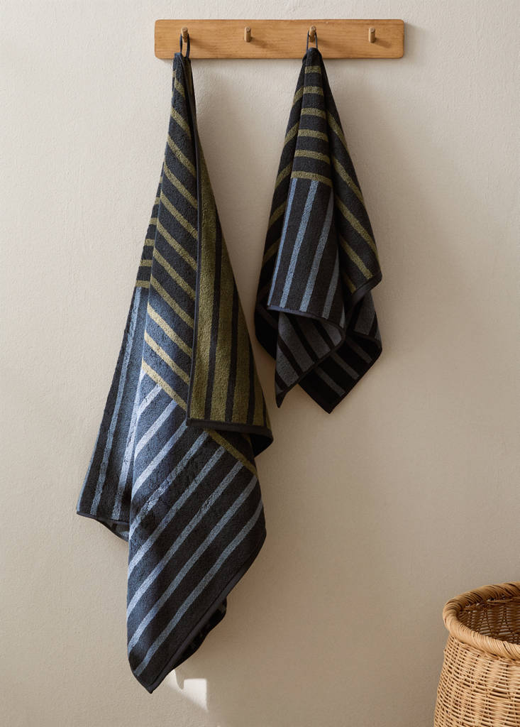 Tamanho: 90x150cm. 100% Algodão. Design de riscas bicolor. De grande absorção e respirável para uma secagem rápida. Disponível em várias cores. Combina com mais produtos da coleção