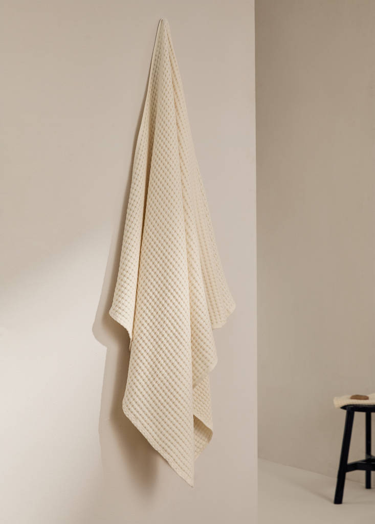 100% Algodão. Gramagem: 400 g/m2. Tamanho: 90x150cm. Textura waffle. Tecido fresco, suave, durável, respirável e versátil. Experimente o conforto, a textura e a excelente absorção desta toalha. O seu design elegante adicionará um toque de sofisticação à sua casa de banho. Disponível em várias cores. Combina com mais produtos da coleção