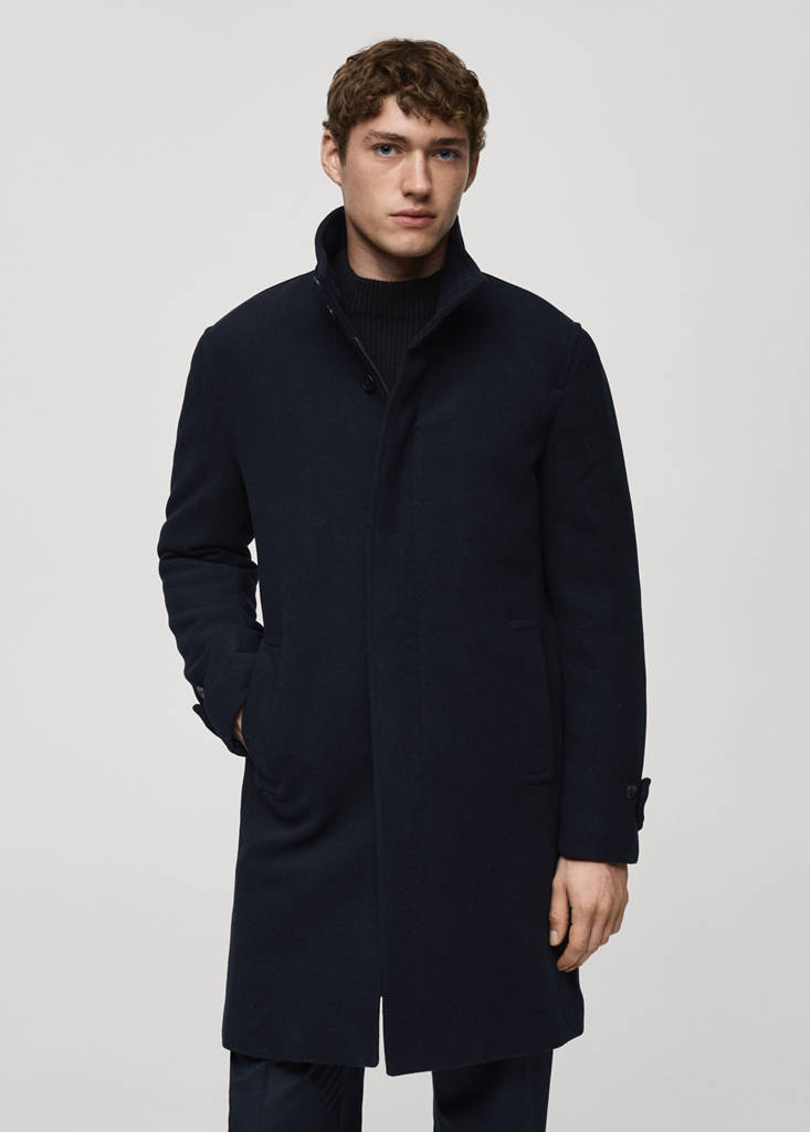 Estrutura pesada. A cor cinzento-escura só está disponível 'online. Slim fit. Tecido de lã. Design longo. Gola alta. Fecho de correr e botões à frente. Punhos abotoados. Forro interior acolchoado. Abertura atrás. Fecho frontal. Slim fit. Manga comprida. Design acolchoado