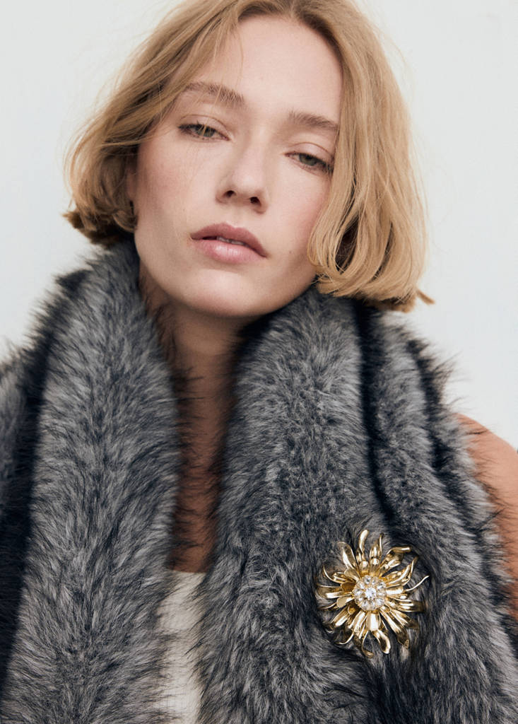 Formato de flor. Fecho de clip. Acabamento metálico