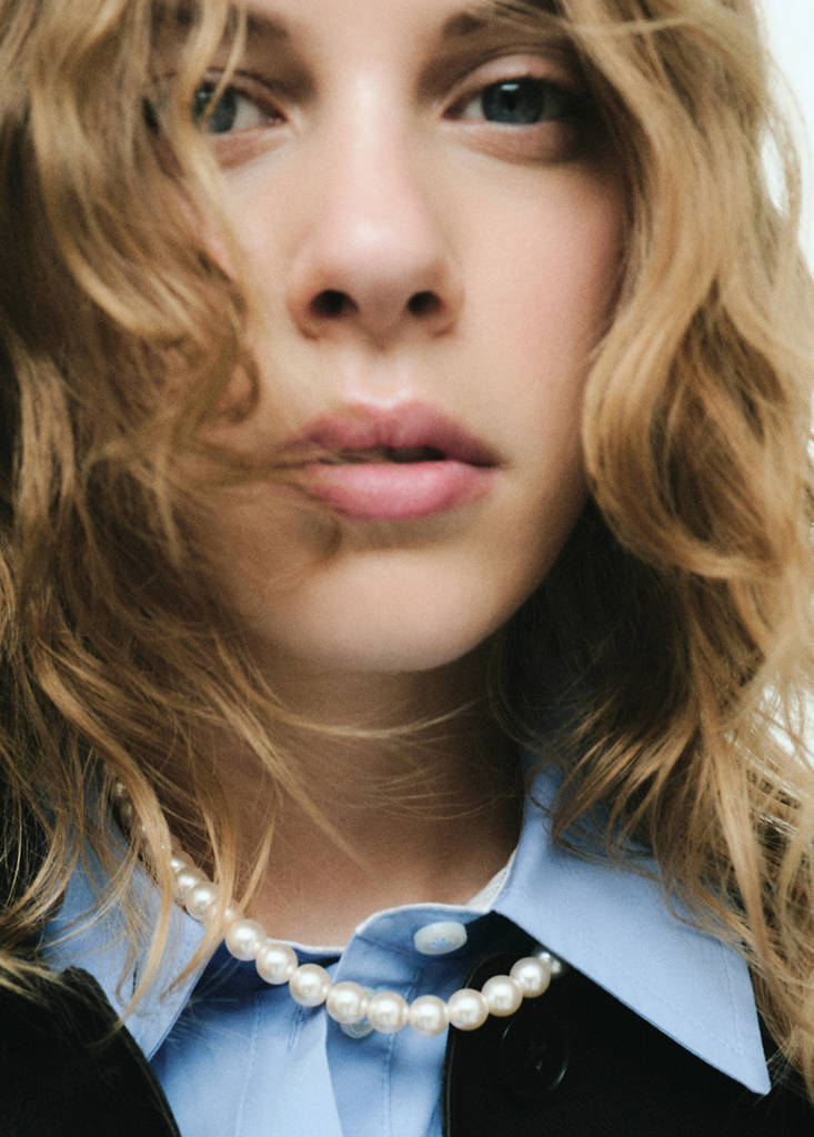 Missangas de cristal. Modelo de pérola. Fecho de corrente e mosquetão