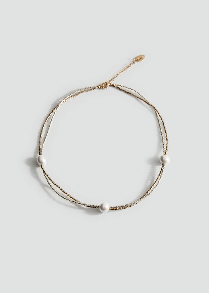 Modelo fino. Adorno de pérolas. Fecho de corrente e mosquetão